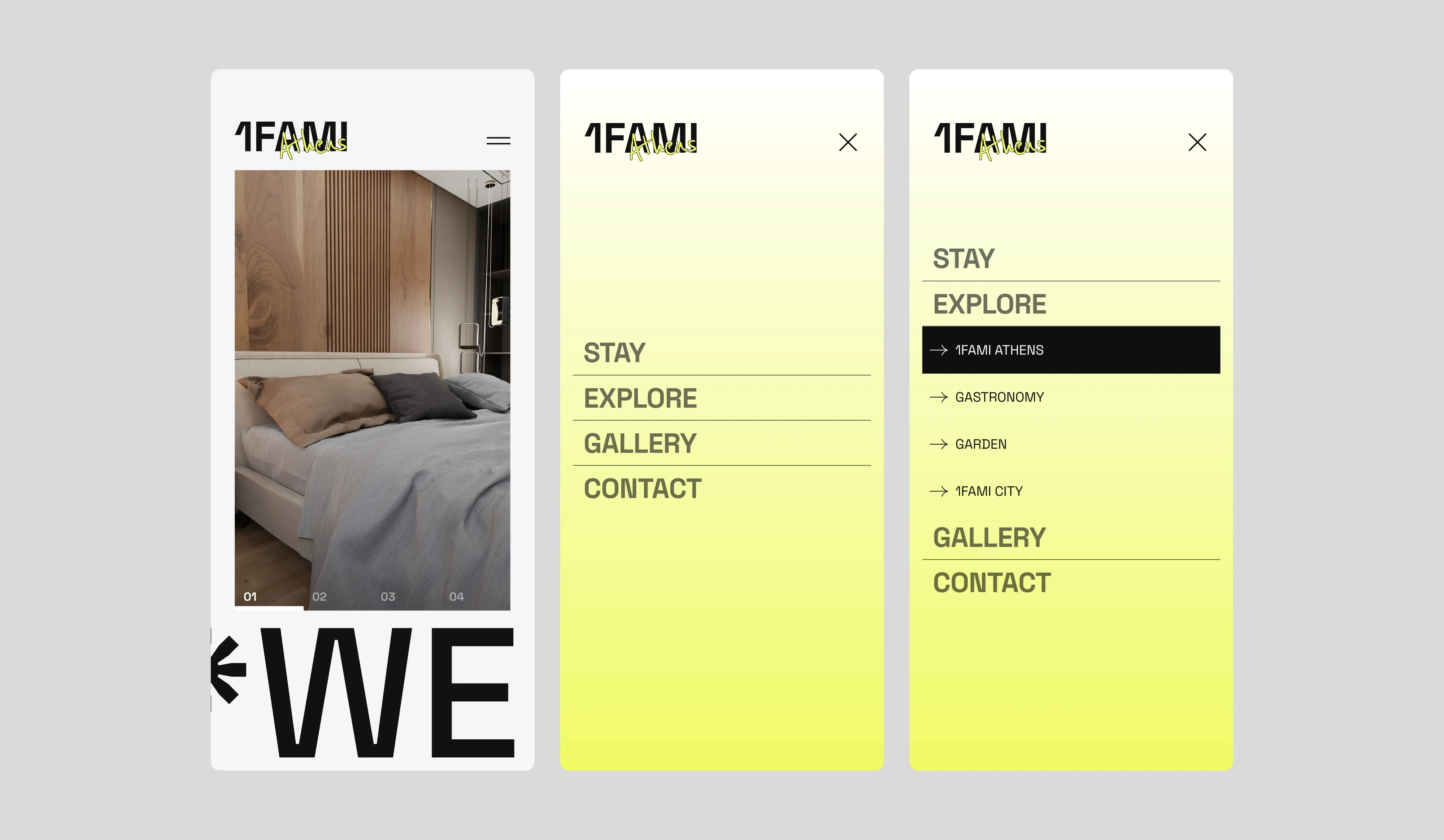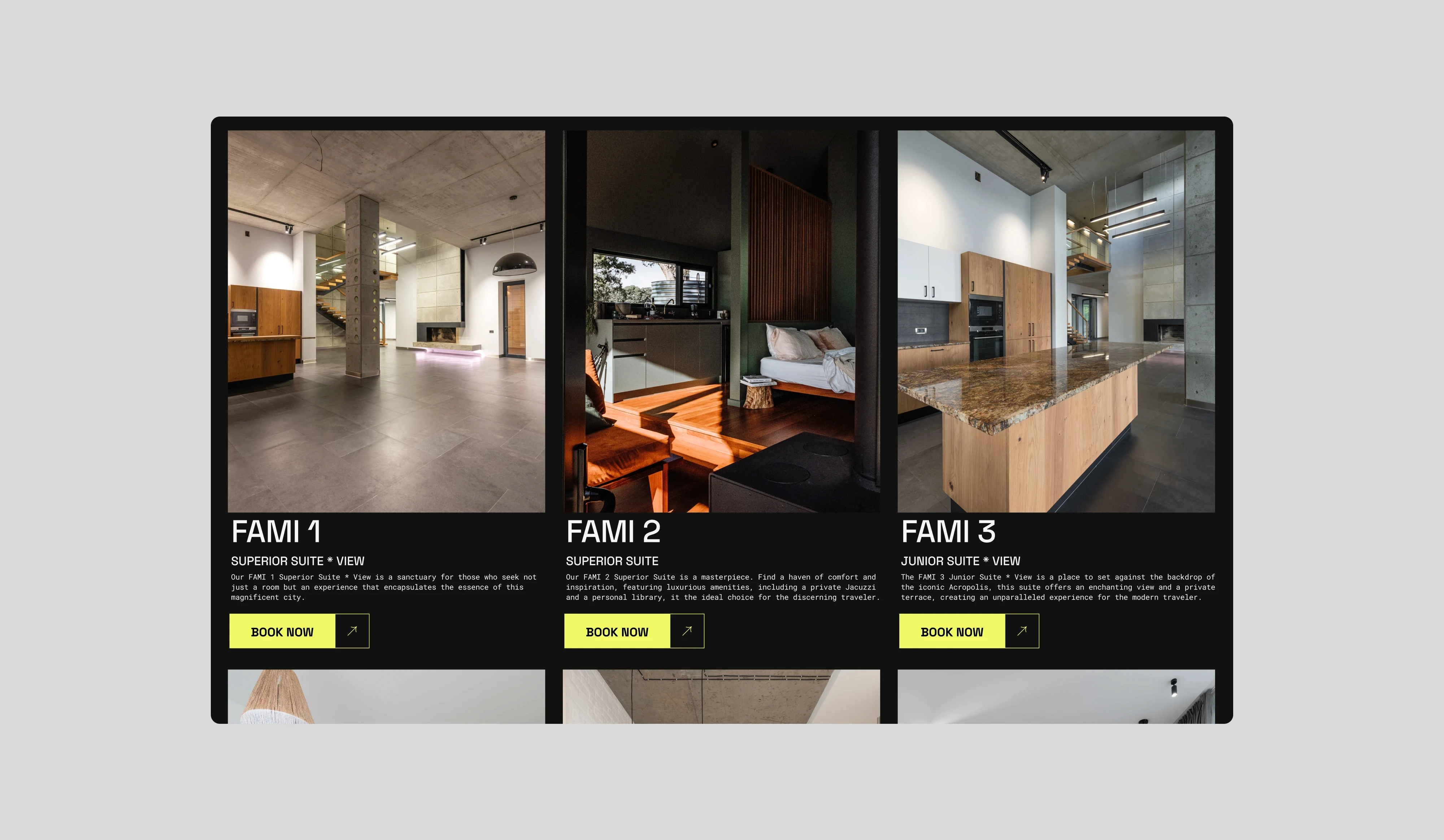 The creative direction merges bold minimalism with urban elegance, reflecting the contemporary spirit of modern travelers. The dual light and dark modes enhance flexibility and mood expression, while the structured grid system ensures clean layouts and intuitive navigation. Black, white, and neon yellow tones create a confident visual identity that feels playful yet sophisticated, allowing each brand to infuse its own character and storytelling.
