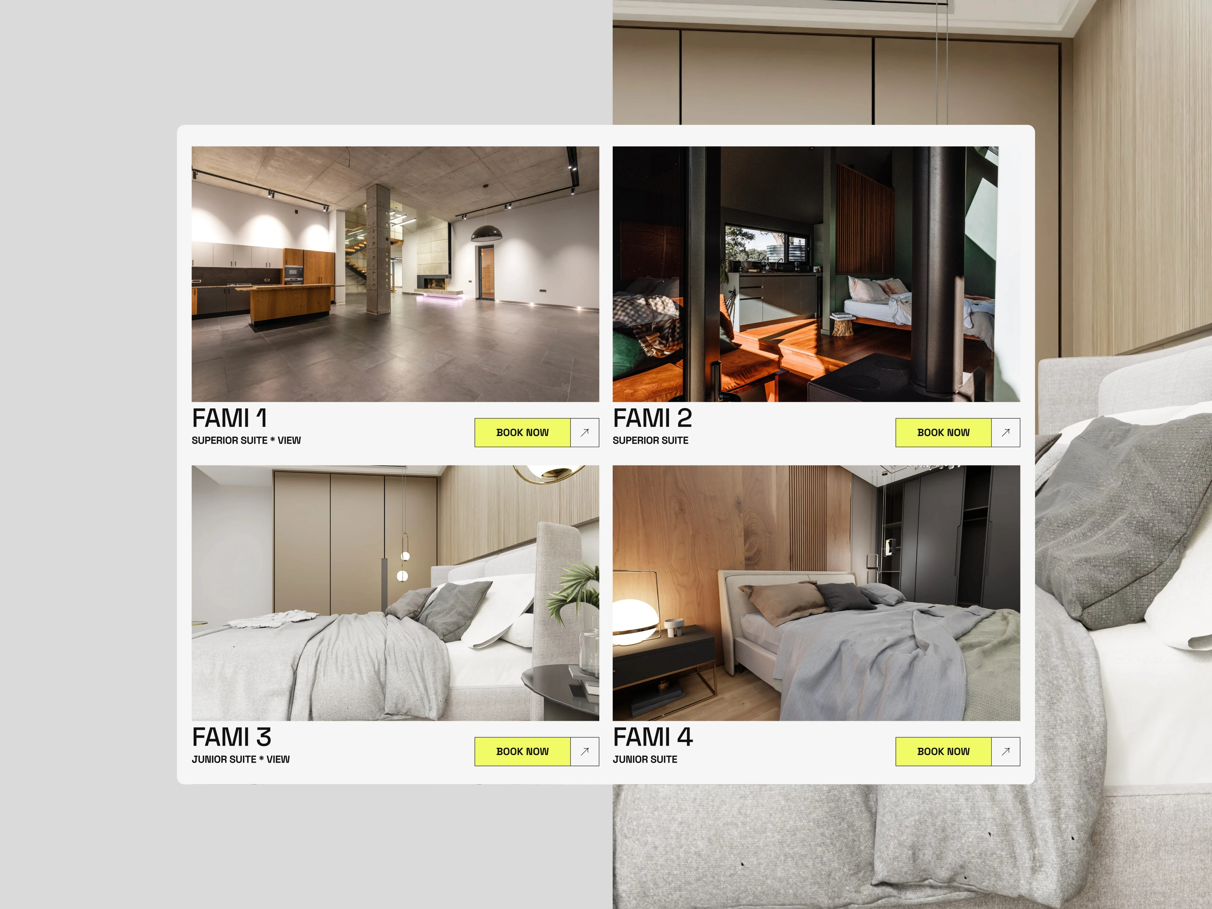 1FAMI is a boutique hospitality website template designed from scratch, drawing on extensive experience with hotel and travel industry projects. Crafted for a wide range of establishments, from boutique hotels and hostels to B&Bs, apartments, and restaurants, it combines a refined aesthetic with a highly adaptable design system.