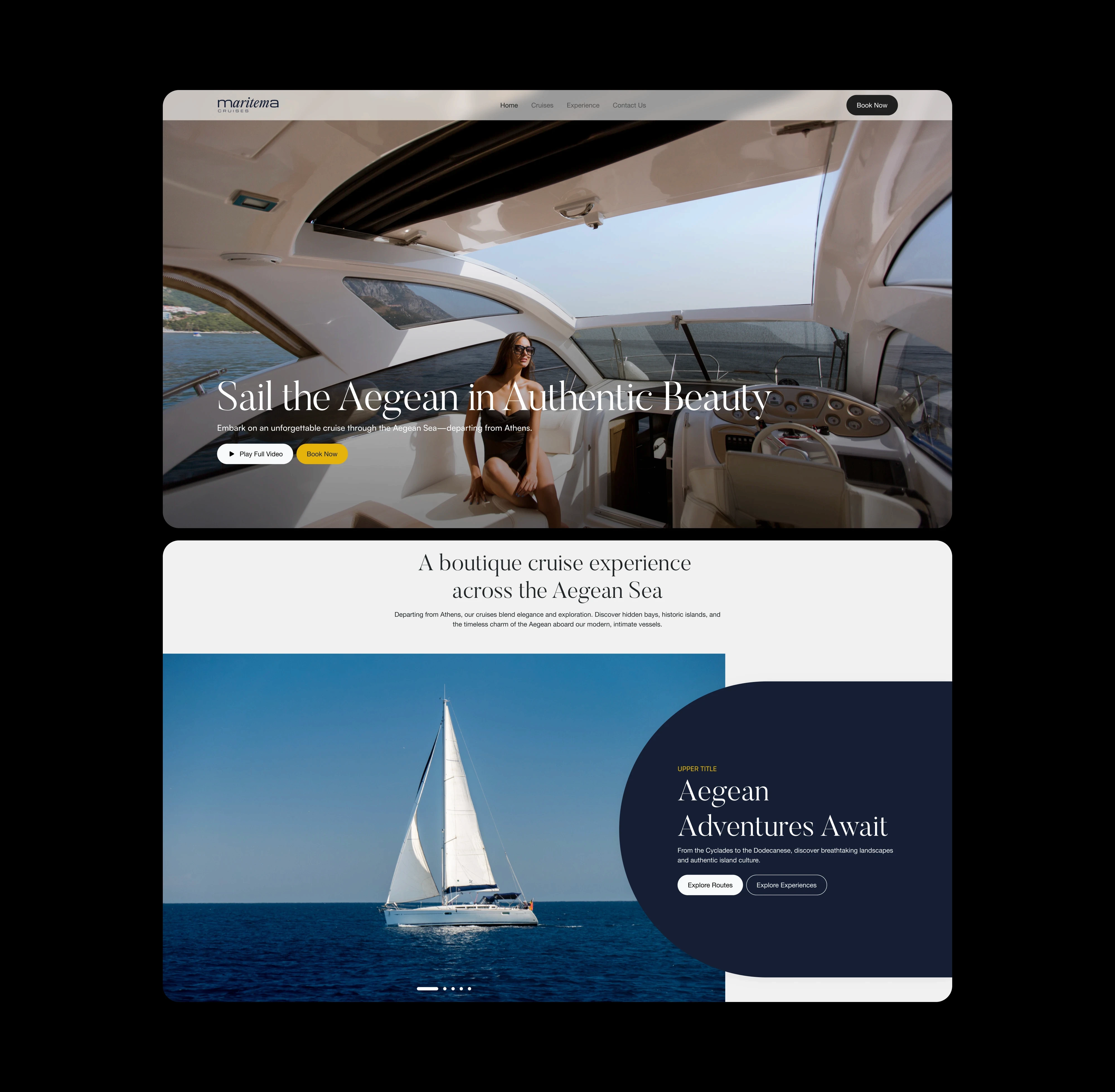 The visual direction subtly reflects the maritime world without becoming overly thematic. Soft blues and neutrals, fluid shapes, and spacious layouts communicate freshness, freedom, and professionalism, mirroring the yachting experience.