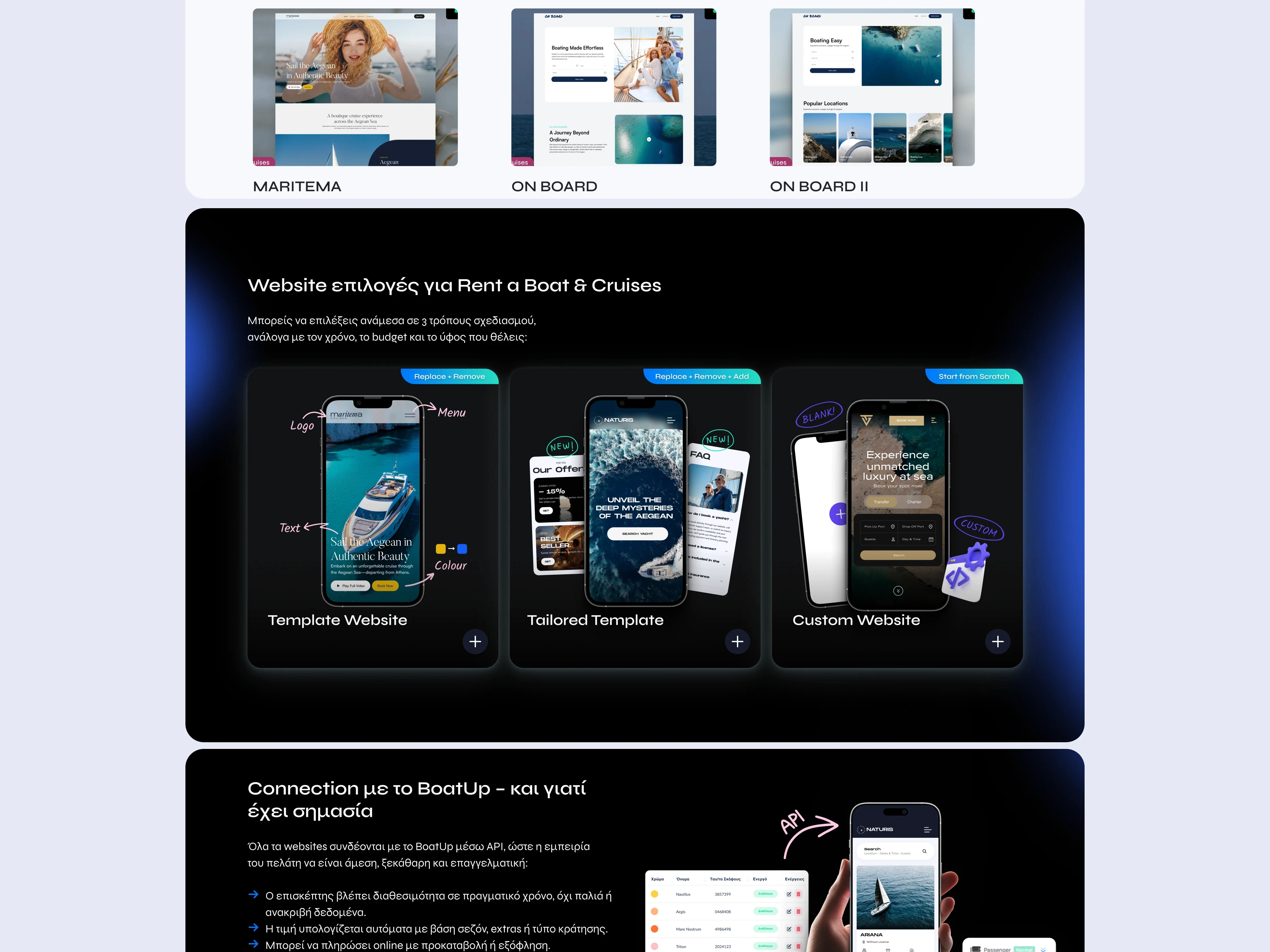 Web App (Dashboard / Fleet Management System) Built on Laravel with Backpack for advanced CRUD management and extensive customizations tailored to the needs of charter companies. Booking Portal (Customer-Facing Booking Page) A fully custom-built Laravel application, optimized for real-time availability, pricing rules, and direct payments through integrated providers. Main Website Developed in WordPress using Bootstrap for fast, modular, and responsive layout implementation—fully aligned with the BoatUp brand identity. Client Web Templates Customizable WordPress + Bootstrap templates provided to BoatUp clients (boat rental businesses, charter operators, cruise providers) for quick deployment and seamless integration with the BoatUp API.
