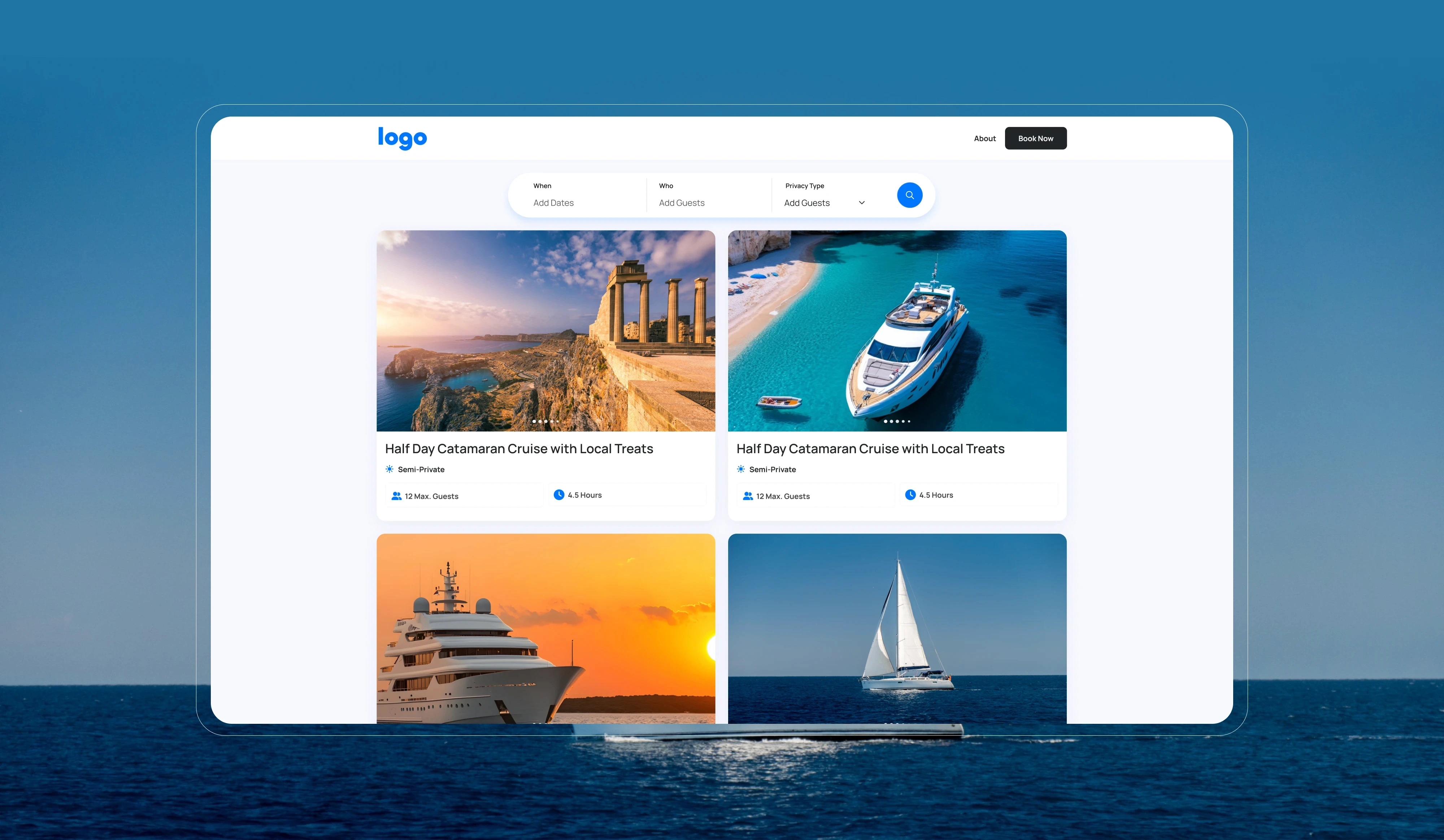 Our approach focused on creating a clean, intuitive, and trustworthy experience for both charter businesses and end-users. BoatUp operates in a highly competitive travel-tech space, so the design needed to balance professionalism, ease of use, and brand personality.